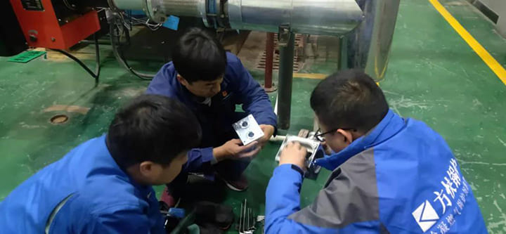有理论就会有实践。在现场工人的强烈要求下,王明烜和客户公司的管理人员又进入到现场锅炉房进行现场实操培训工作。燃烧器如何进行拆卸检修,氧含量如何具体标定,烟分测试如何有效进行等多个问题,王明烜通过手把手现场展示的方式向大家进行了一次实操培训工作。