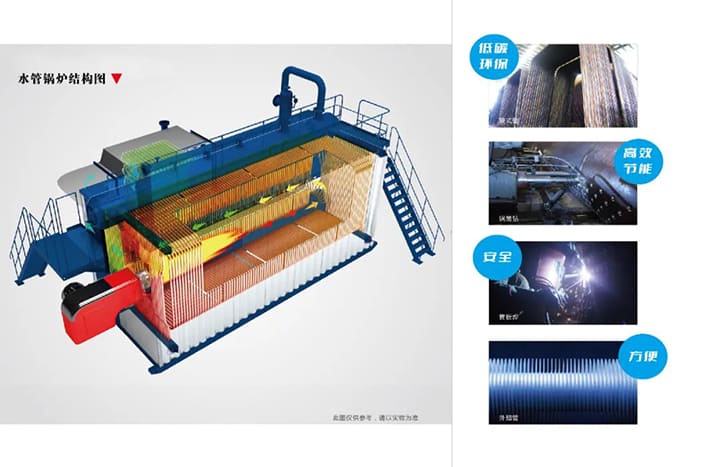 一汽丰田汽车集团采用的为方快 SZS 水管锅炉。该锅炉整装出厂,有效缩短了安装周期,节省锅炉采购成本。锅炉受热面布置合理,传热面积富余,因而具有一定的超负荷能力,炉膛容积选取合理,保证燃料充分燃烧,热效率大大提高。另外锅炉还布置有防爆门和炉膛压力检测装置,使得锅炉运行安全可靠。