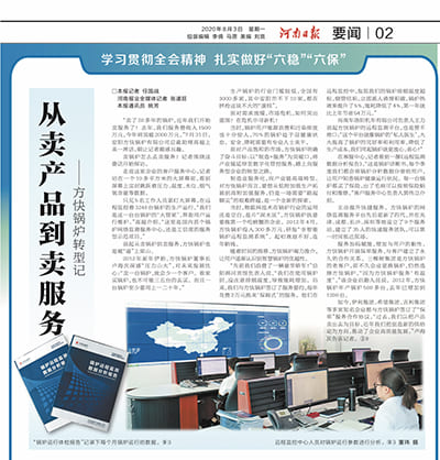 如今,伊利集团、希望集团、吉利集团等多家知名企业都与方快锅炉签订了“保单”服务合作协议。“过去,我们以把产品卖出去为目标,近年我们把创造新的供给定为方向,推动了企业高质量发展。”卢海庆告诉记者。
