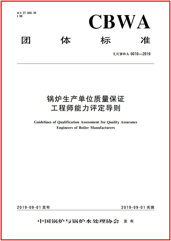 9月1日,由中国锅炉与锅炉水处理协会主导设计, 由 方快锅炉有限公司 参与制定的T/CBWA 0010-2019 《锅炉生产单位质量保证工程师能力评定导则》正式发布。 这标志着方快锅炉有限公司正式开启了参与行 业标准制定的新阶段, 掌握标准,就如同掌握了行业制高点,掌握了“行业话语权” “流企业做标准,二流企业做技术,三流企业做产品”。