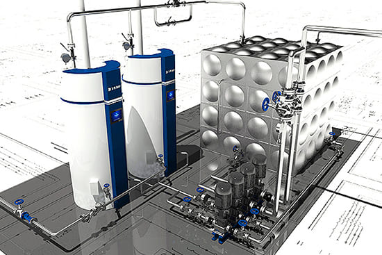 无需给水泵,直接连接市政管网即可,模块式组合,获得更高的运行效率。