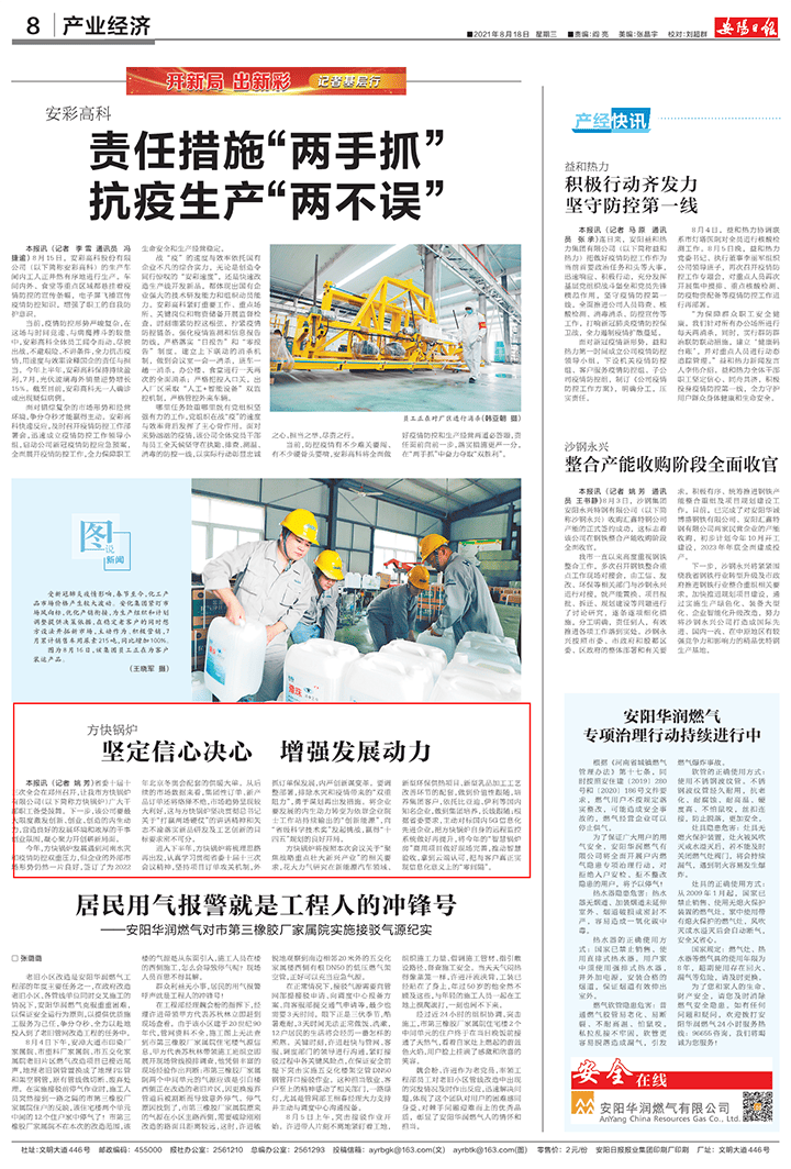 今年,方快锅炉发展遇到河南水灾和疫情防控双重压力,但企业的外部市场形势仍然一片良好,签订了为2022年北京冬奥会配套的供暖大单。从后续的市场数据来看,集团性订单、新产品订单还将络绎不绝,市场趋势呈现较大利好,这与方快锅炉坚决贯彻总书记关于“打赢两场硬仗”的讲话精神和矢志不渝落实新品研发及工艺创新的目标要求密不可分。