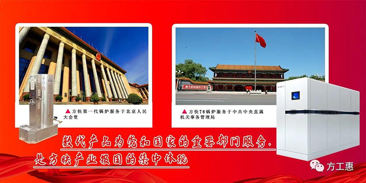 通过不断的坚持,在公司三代人员的技术沉淀下,方快,在锅炉排放和锅炉热效率提升上面不断的精益求精,其排放数值已达到国际先进水平。产品广泛地被人民大会堂,中共中央直属机关事务管理局,中国人民银行等重要的政府机关所采用。方快技术工人“产业报国”的精神情怀得到极大满足。