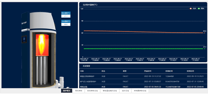 此外,商用冷凝容积式燃气热水炉模块式组合,用户可以根据实际需求热量的动态变化来调整运行锅炉的台数,获得更高的运行效率。方快锅炉独有的智控系统,用户只需通过彩色触屏或手机APP,轻松实现智能远程控制,做到全程自动监测系统模块的运行情况,及时预警、自动保护,提升商用生产工作的便捷性和安全性!