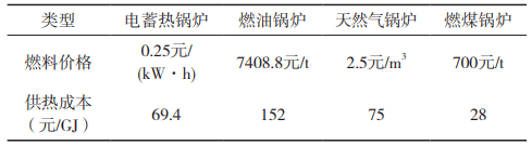 各种备用锅炉,由于燃料的不同,供热成本也不相同,分析结果见表7。