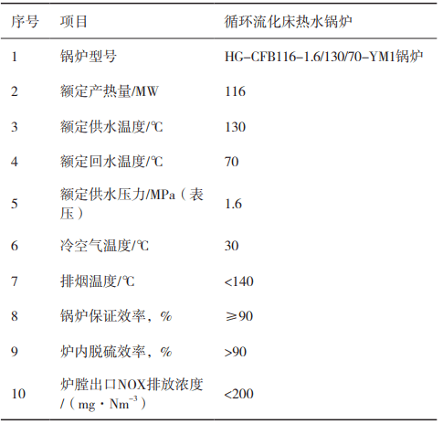 某电厂装机2×300MW供热机组,为保证供热的安全可靠,避免在停运最大一台机组时对供热产生过大影响,在厂内新建1×116MW循环流化床热水炉(见表2)。
