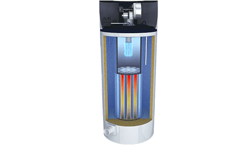 锅炉启动后,燃料燃烧产生的热量传给受热面内的热媒水,使热媒水在炉内负压状态下蒸发成负压蒸汽;负压蒸汽上升与在真空室内的热交换器进行相变换热后,变成凝结水回流到热媒水中。水蒸汽凝结后形成水滴流回热媒水,重新被加热气化,开始了新的循环过程;冷凝换热部分与高温烟气充分换热,直接加热换热器内给水,烟气发生冷凝不仅放出了部分显热,也释放了大量潜热 , 将锅炉的效率发挥至极限!